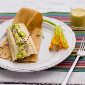 Tamal de Pollo CHATA con Salsa de Flor de Calabaza