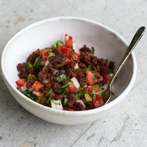 Tacos de lechuga con chorizo de soya CHATA y mango